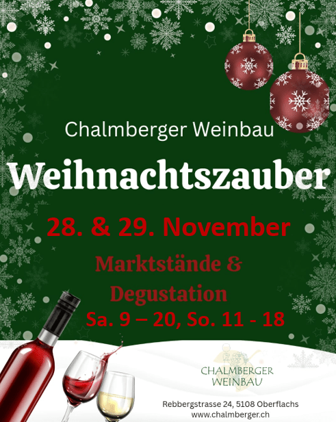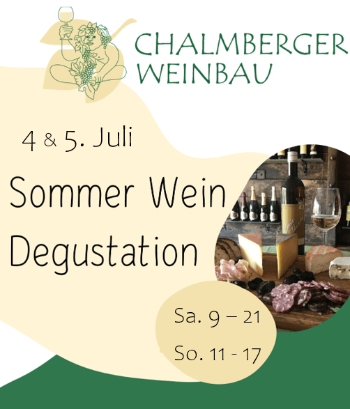 Beginn: Ab 18.00 begrüssen wir sie herzlich im Degustationsraum zur freien Degustation aller Chalmberger Weine. Probieren sie sich durch 🙂